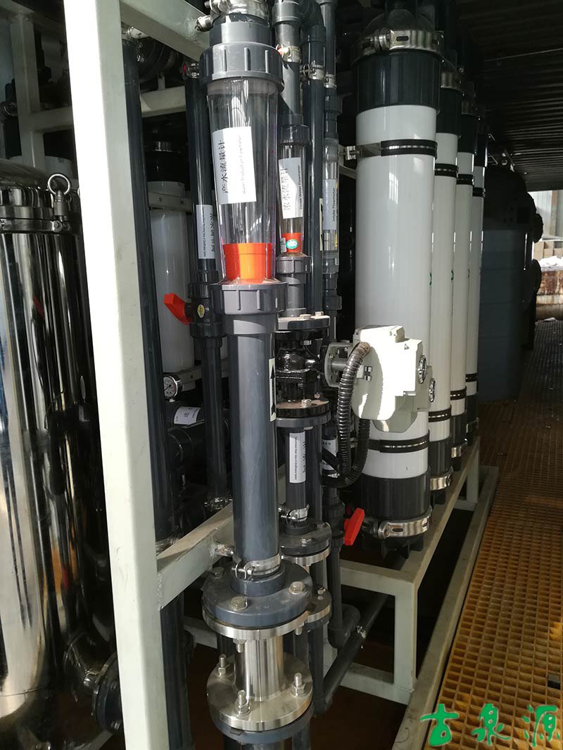 在超濾過程中,水溶液在壓力推動下,流經膜表面,小于膜孔的溶劑(水)及小分子溶質透水膜,成為凈化液(濾清液),比膜孔大的溶質及溶質集團被截留,隨水流排出,成為濃縮液。超濾過程為動態(tài)過濾,分離是在流動狀態(tài)下完成的。溶質僅在膜表面有限沉積,超濾速率衰減到一定程度而趨于平衡,且通過清洗可以恢復。