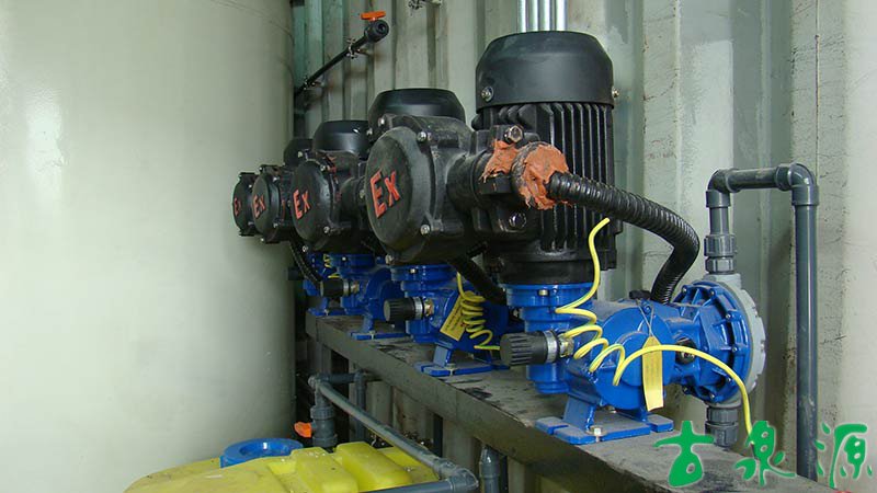 加藥系統(tǒng)(dosing system)主要由溶液箱、攪拌箱(帶攪拌器)、計量泵、液位計、電控柜、管路、閥門、安全閥、止回閥、壓力表、過濾器、底座、扶梯等組成(可根據(jù)用戶實際要求配置)。加藥系統(tǒng)根據(jù)所需藥劑濃度,在攪拌箱內(nèi)配制,經(jīng)攪拌器攪拌均勻后投入溶液箱、用計量泵(加藥泵)向投藥點或指定的系統(tǒng)中輸送所配制的溶液。
